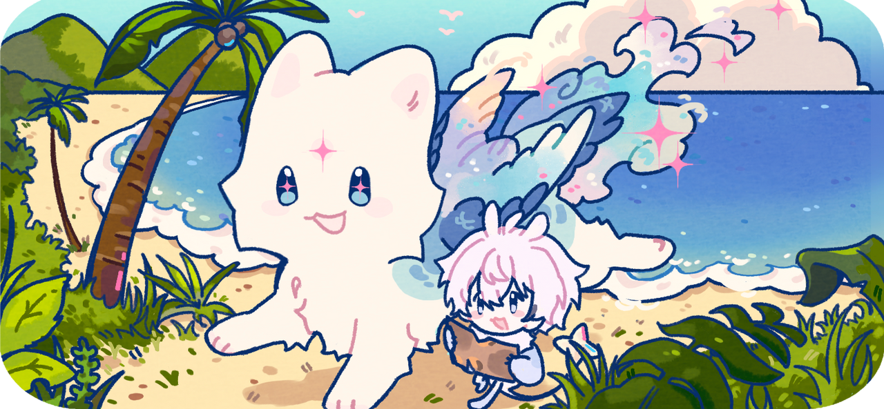 You decoded the message, realizing that the key to the treasure chest lies along a path that leads to the island's right eye. After meeting with a wise old turtle constellation, you and your friends followed his advice and ate the special seaweed that lets you breathe underwater. Finally ready for the descent into the icy waves, Zona guided you and Pun-hmorg down, down, down into the depths until you come across an underwater hole. You follow Zona deeper, catching a glimpse of a box glinting dully in the watery ground. An alarmed cry from Zona has you spinning around to see him surrounded by irritated fish. Panic fills you, you couldn't swim fast enough to help Zona! Suddenly, a grey white blur streaks past you with impossible speed. A stranger has appeared, and her quick reaction saved your little Phosray friend from getting slightly chewed up. You and your friends turn your attention to the helpful stranger. She looks like a Stelciar, but she has a long fish-like tail in place of her hind legs. She explained that she is a 'Merciar' and her kind are the guardians of the deep sea where the souls of the departed rest. With her help, the four of you got ahold of the box only to find that it has a puzzle to unlock it. Working together, you finally solved the puzzle and acquired the key. Your adventure is finally over! You celebrate with your friends, old and new, enjoying this precious moment together.